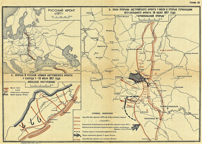 Соответственно, и настроения личного состава ударных батальонов не убеждали в их готовности к революционному наступательному порыву. Однако наступление на Львовском направлении, где у русских было тройное превосходство в людях и двукратное – в артиллерии, всё-таки состоялось. И начало было блестящим, что позволило Керенскому, бывшему на фронте, сообщать в телеграмме Временному правительству: