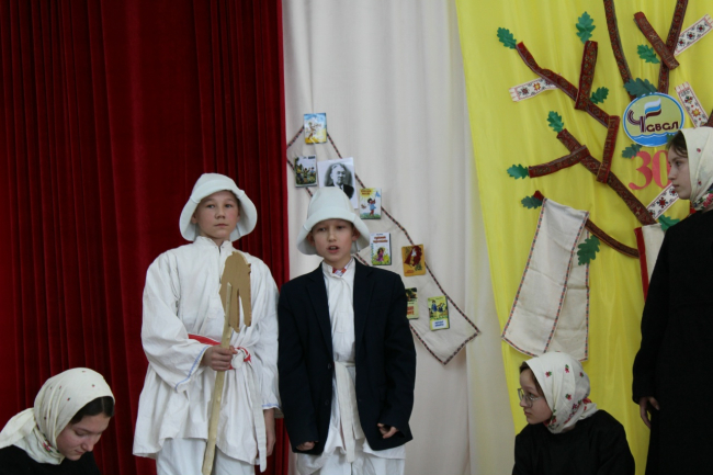 Дорогих гостей встретили с хлебом - солью. В актовом зале на сцене, с любовью украшенной, красовалось чудное дерево. С большим интересом все присутствующие ознакомились с выставкой рисунков, навеянных стихами Петра Ялгира. Сами школьники были гидами во время ознакомления с экспозицией школьного музея. Учитель истории, краевед Полозин Н.И. выступил с интересным докладом о том, каким Человеком был Пётр Алексеевич.